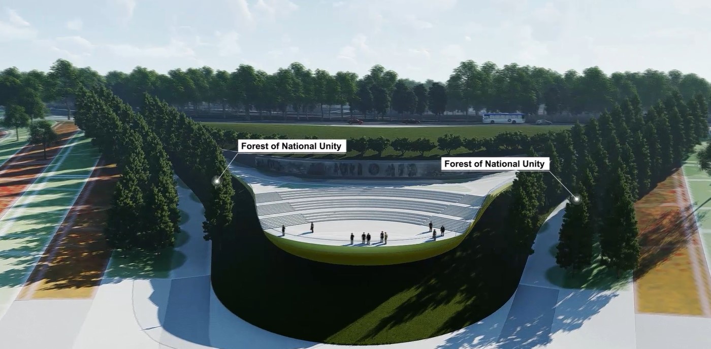 國花演講臺(Rostrum)位于文化禮儀軸東端,宛如“盛開”的國花馬蹄蓮。