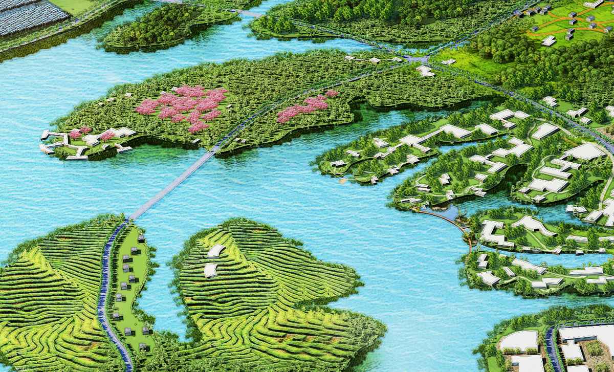 示范區位于湖北省赤壁市西門戶,西臨長江,北距武漢100公里,南距岳陽70公里、長沙220公里,西距洪湖市約10公里,距離赤壁市中心城區28公里。基地河湖水系眾多,自然資源稟賦良好。隨著赤壁長江大橋開通以及江北高速通車,華潤·赤壁長江經濟帶鄉村振興示范區正在從交通末端變為城市客廳,成為帶動赤壁市經濟社會發展的副中心和主戰場,也成為赤壁市融入武漢都市圈發揮中三角核心區位優勢的新增長極。示范區以落實鄉村振興戰略,全面推進鄉村振興,加快農業農村現代化為導向,在對基地產業現狀充分摸查的基礎上,結合碳中和、大健康等理念,構建示范區一二三產融合發展金字塔,創建示范區綠色產業生態圈,結合基地自然資源現狀,形成了農業基底上的組團式產業分布。空間上充分考慮用地適宜性,保留原有藍綠肌理,形成葉脈狀的空間格局并充分考慮與在編國土空間規劃的相互銜接。提出“企業+政府合作共贏”的新模式,實現政府引導下的企業主題開發模式,有效支撐項目實施落地,更好地助力示范區成為高標準的中國未來鄉村發展樣板區。