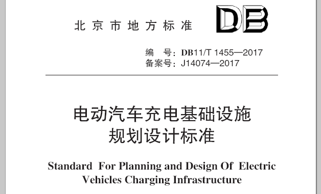 為規(guī)范、引導(dǎo)和推動北京市電動汽車充電基礎(chǔ)設(shè)施的規(guī)劃建設(shè),根據(jù)《國務(wù)院辦公廳關(guān)于加快電動汽車充電基礎(chǔ)設(shè)施建設(shè)的指導(dǎo)意見》(國辦發(fā)〔2015〕73 號)和北京市人民政府辦公廳印發(fā)《關(guān)于進(jìn)一步加強電動汽車充電基礎(chǔ)設(shè)施建設(shè)和管理的實施意見》等文件要求,結(jié)合北京市實際情況,編制出版了《電動汽車充電基礎(chǔ)設(shè)施規(guī)劃設(shè)計標(biāo)準(zhǔn)》(DB11/T1455-2017),該標(biāo)準(zhǔn)自2018 年4月1 日起實施。