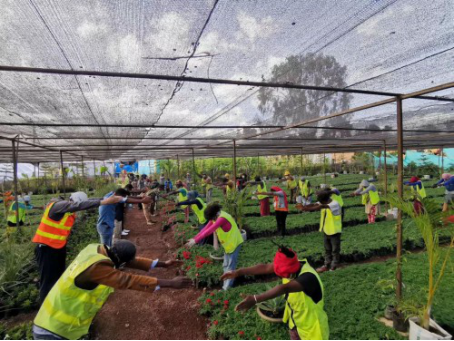 援埃塞俄比亞河岸綠色發(fā)展項(xiàng)目帶領(lǐng)當(dāng)?shù)毓と丝箵粜鹿谝咔椋鲎o(hù)肺保健操